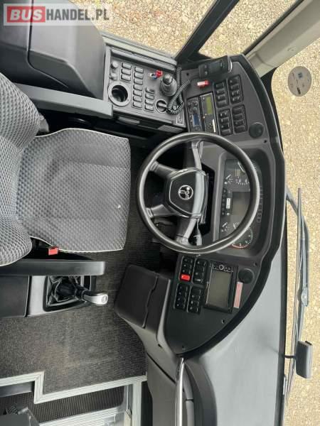 Wyposażenie: video, WC, lodówka, caffebar, kabina sypialna, oświetlenie indywidualne, nawiewy dyszowe, siateczki, ABS, ASR, tempomat, retarder, telefon, nawigacja, CD, podnóżki, stoliczki, mikrofon, klimatyzacja, radio, regulacja wysokości nadwozia, centralny zamek, podwójne szyby boczne, wspomaganie kierownicy, elektryczne lusterka, fotele odchylane i rozsuwane, DVD, ogrzewanie stacjonarne, ESP