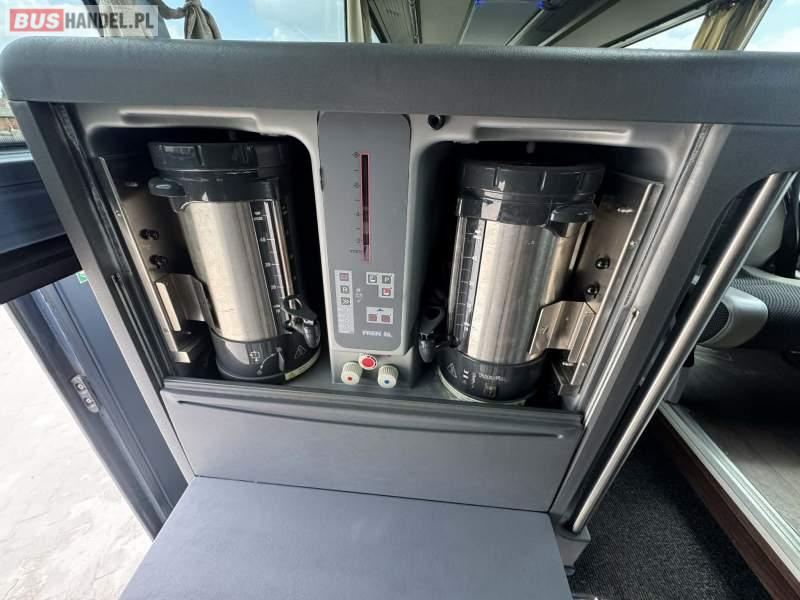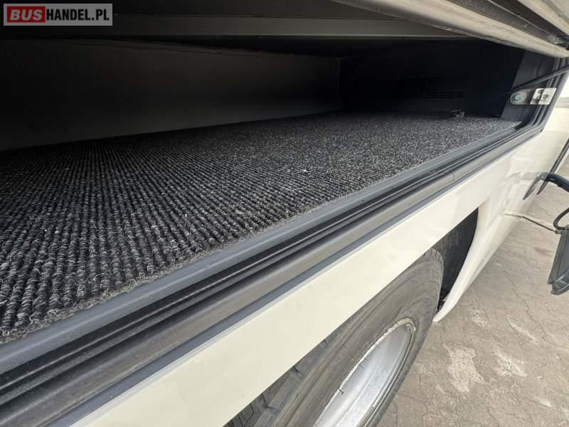 Wyposażenie: video, WC, lodówka, caffebar, kabina sypialna, oświetlenie indywidualne, nawiewy dyszowe, siateczki, ABS, ASR, tempomat, retarder, CD, podnóżki, stoliczki, mikrofon, klimatyzacja, radio, regulacja wysokości nadwozia, centralny zamek, podwójne szyby boczne, wspomaganie kierownicy, elektryczne lusterka, fotele odchylane i rozsuwane, DVD, ogrzewanie stacjonarne, ESP