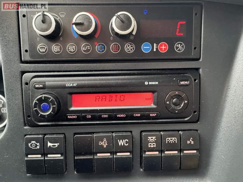 Wyposażenie: video, WC, lodówka, kabina sypialna, oświetlenie indywidualne, nawiewy dyszowe, siateczki, ABS, ASR, tempomat, retarder, CD, podnóżki, stoliczki, mikrofon, klimatyzacja, radio, regulacja wysokości nadwozia, centralny zamek, podwójne szyby boczne, wspomaganie kierownicy, elektryczne lusterka, fotele odchylane i rozsuwane, DVD, ogrzewanie stacjonarne, ESP